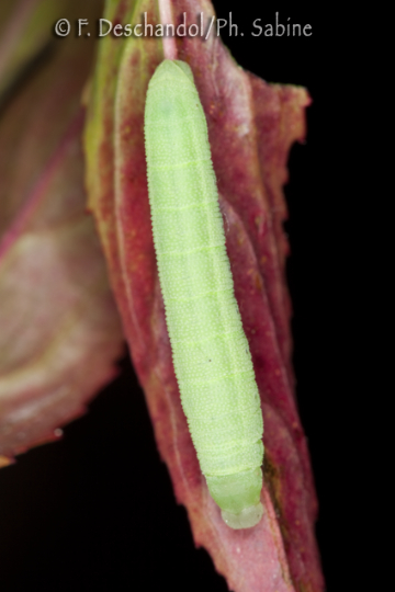 : Sphinx de l'Epilobe (Proserpinus proserpina), chenille 3ème stade, mue proche, Malacky, Slovaquie.