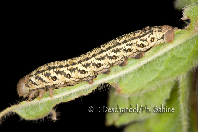 : Sphinx de l'Epilobe (Proserpinus proserpina), chenille 4ème stade, forme brune, Moravie, République Tchèque.
