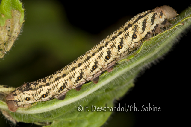 : Sphinx de l'Epilobe (Proserpinus proserpina), chenille 4ème stade, forme brune, Moravie, République Tchèque.