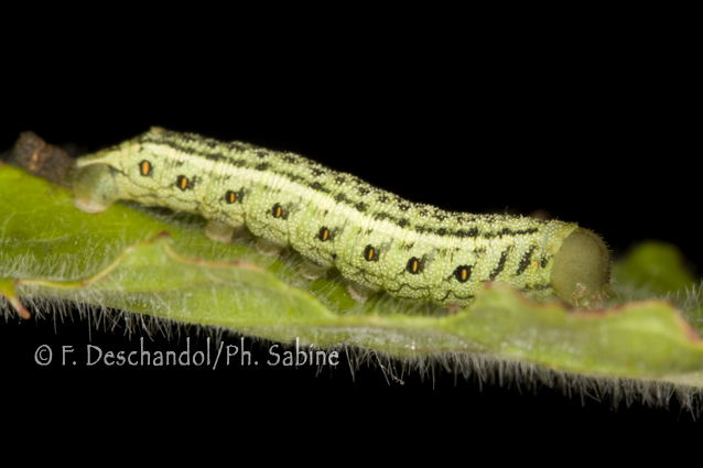 : Sphinx de l'Epilobe (Proserpinus proserpina), chenille 4ème stade, forme verte, Moravie, République Tchèque.