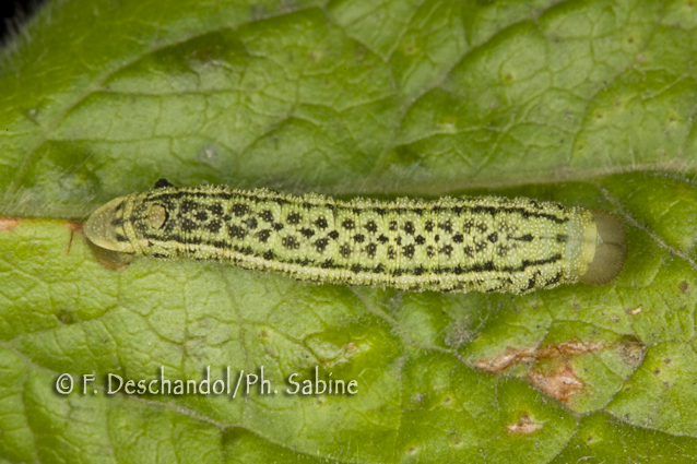 : Sphinx de l'Epilobe (Proserpinus proserpina), chenille 4ème stade, forme verte, Moravie, République Tchèque.
