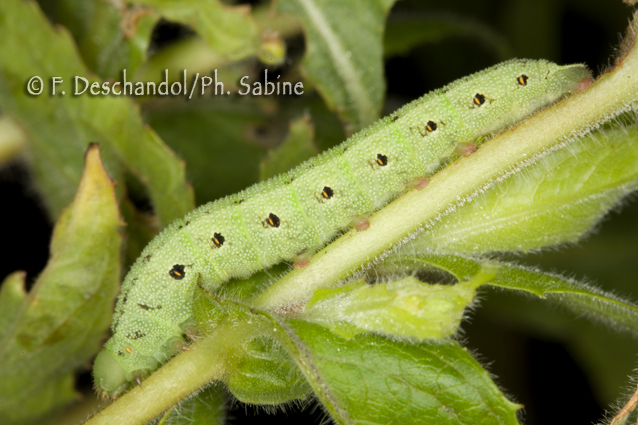: Sphinx de l'Epilobe (Proserpinus proserpina), chenille 4ème stade, forme verte, Moravie, République Tchèque.
