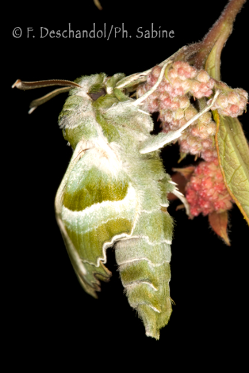 : Sphinx de l'Epilobe (Proserpinus proserpina), mâle à l'éclosion, Moravie, République Tchèque.