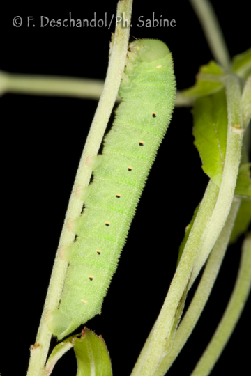 : Sphinx de l'Epilobe (Proserpinus proserpina), chenille 4ème stade, forme verte, Baie de Seine (76), France.