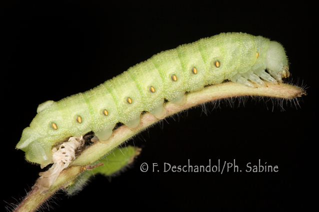 : Sphinx de l'Epilobe (Proserpinus proserpina), chenille 5ème stade après la mue, Moravie, République Tchèque.