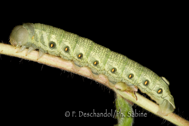 : Sphinx de l'Epilobe (Proserpinus proserpina), chenille 5ème stade après la mue, Moravie, République Tchèque.