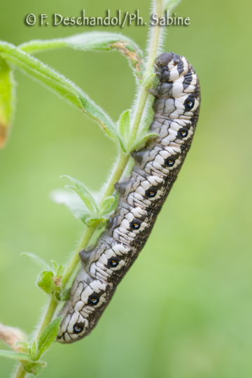 : Sphinx de l'Epilobe (Proserpinus proserpina), chenille 5ème stade, Baie de Seine (76), France.