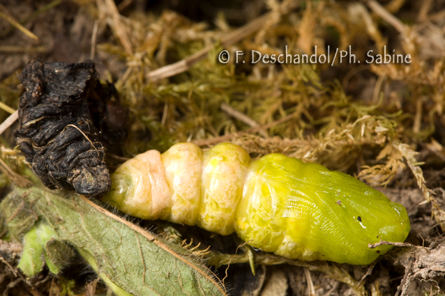 : Sphinx de l'Epilobe (Proserpinus proserpina), chrysalide récente, Moravie, République Tchèque.