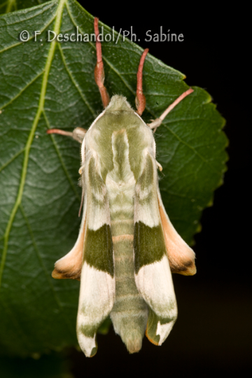 : Sphinx du Tilleul (Mimas tiliae), mâle à l'éclosion, Gröbenzell, Allemagne.