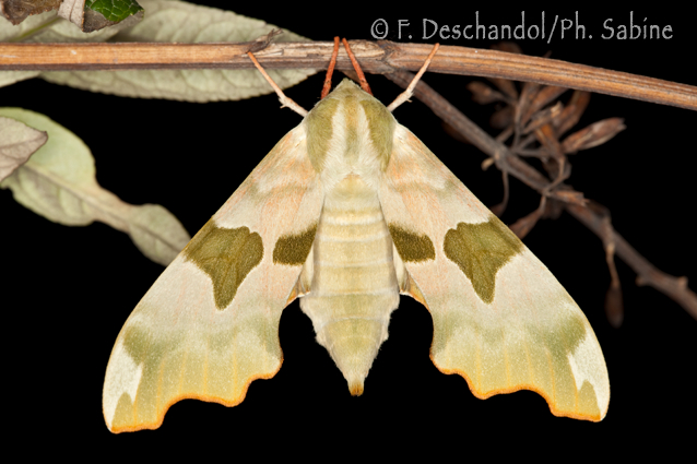 : Sphinx du Tilleul (Mimas tiliae), femelle, Treillières (44), France.