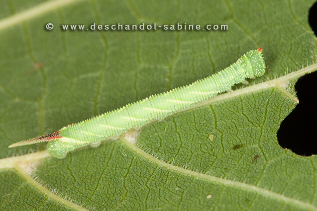 : Sphinx du Tilleul (Mimas tiliae), chenille 3ème stade, Le Havre (76), France.