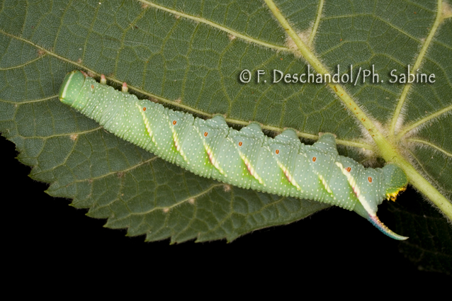 : Sphinx du Tilleul (Mimas tiliae), chenille 5ème stade, Le Havre (76), France.