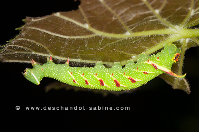 : Sphinx du Tilleul (Mimas tiliae), chenille 5ème stade, Le Havre (76), France.