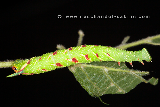 : Sphinx du Tilleul (Mimas tiliae), chenille 5ème stade, Le Havre (76), France.