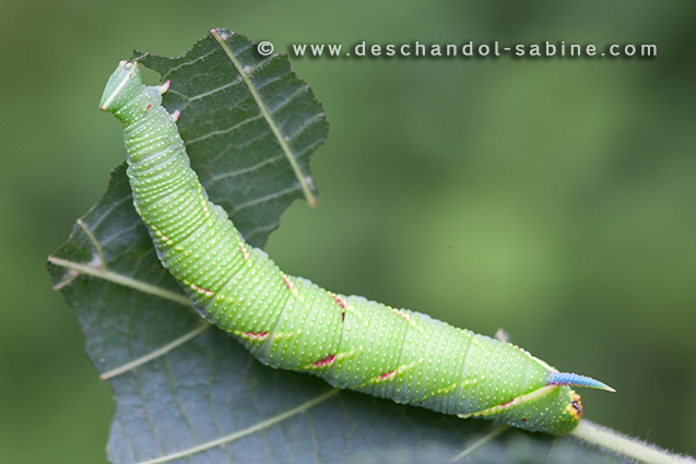 : Sphinx du Tilleul (Mimas tiliae), chenille 5ème stade, Le Havre (76), France.