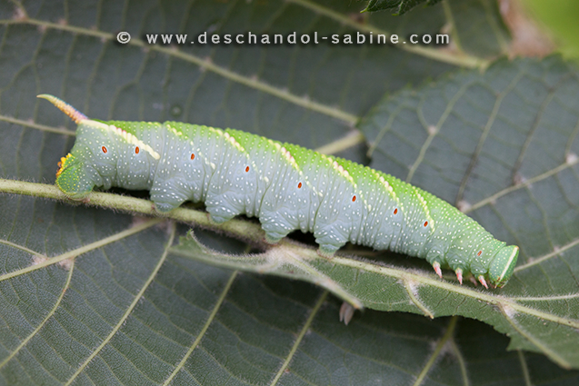 : Sphinx du Tilleul (Mimas tiliae), chenille 5ème stade, Le Havre (76), France.
