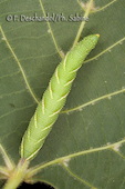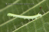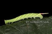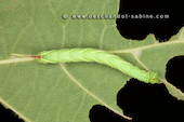 Sphinx du Tilleul (Mimas tiliae), chenille 1er stade, Le Havre (76), France.