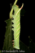 Sphinx du Tilleul (Mimas tiliae), chenille avant nymphose, Le Havre (76), France.