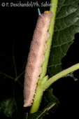 Sphinx du Tilleul (Mimas tiliae), chenille 5ème stade, détail du scolus, Le Havre (76), France.