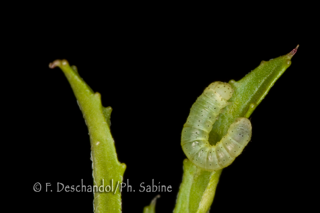 : Sphinx Chauve-Souris (Hyles vespertilio), chenille 1er stade, Valais, Suisse.