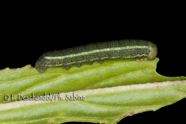 : Sphinx Chauve-Souris (Hyles vespertilio), chenille 2ème stade, forme sombre, Valais, Suisse.