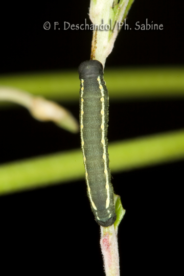 : Sphinx Chauve-Souris (Hyles vespertilio), chenille 3ème stade, forme sombre, Valais, Suisse.