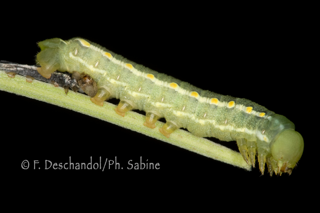 : Sphinx Chauve-Souris (Hyles vespertilio), chenille 4ème stade après la mue, Valais, Suisse.