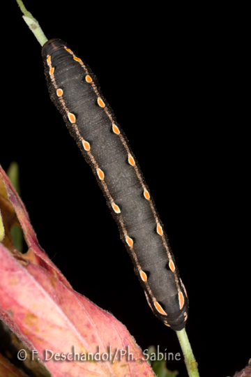 : Sphinx Chauve-Souris (Hyles vespertilio), chenille 4ème stade, forme sombre, Valais, Suisse.