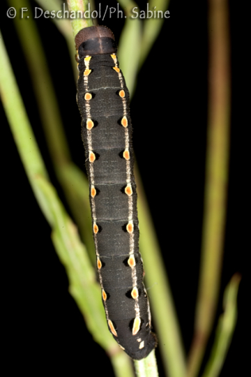 : Sphinx Chauve-Souris (Hyles vespertilio), chenille 4ème stade, forme sombre, Valais, Suisse.