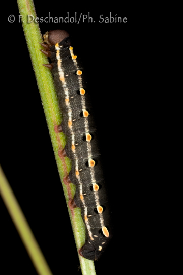 : Sphinx Chauve-Souris (Hyles vespertilio), chenille 4ème stade, forme sombre, Valais, Suisse.