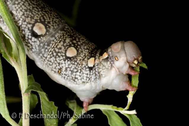 : Sphinx Chauve-Souris (Hyles vespertilio), chenille 5ème stade, Valais, Suisse.