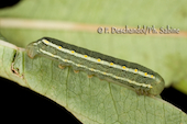 Sphinx Chauve-Souris (Hyles vespertilio), chenille 1er stade, mue proche, Valais, Suisse.
