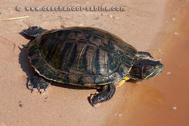 : Tortue de Floride (Trachemys scripta elegans), Vall d'Agaiarens, Minorque, Baléares, Espagne.
