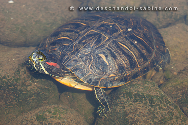 : Tortue de Floride (Trachemys scripta elegans), Ventiseri, Corse, France.