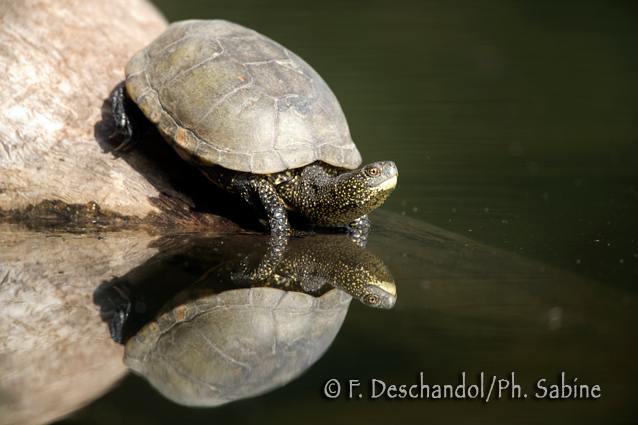 : Cistude d'Europe (Emys orbicularis galloitalica), Var (83), France.