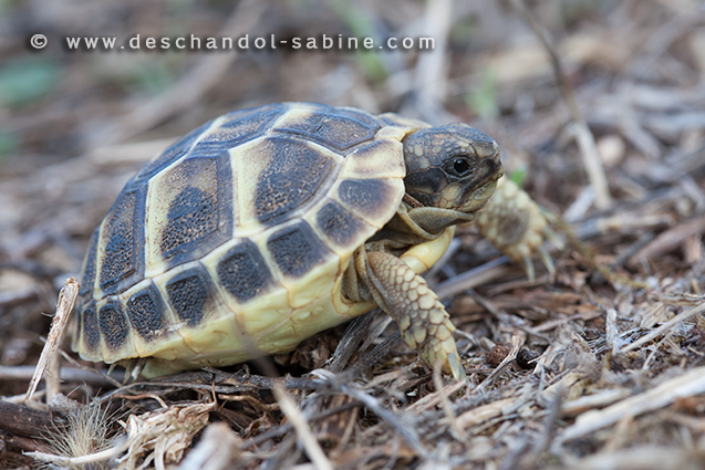 : Tortue d'Hermann (Testudo hermanni hermanni), juvénile, Turo Amagat, Minorque, Baléares, Espagne.
