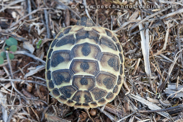 : Tortue d'Hermann (Testudo hermanni hermanni), juvénile, Turo Amagat, Minorque, Baléares, Espagne.