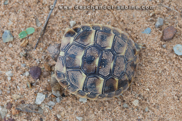 : Tortue d'Hermann (Testudo hermanni hermanni), juvénile, Cala Tirant, Minorque, Baléares, Espagne.