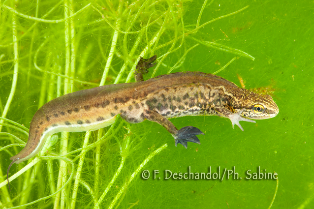 : Triton palmé (Lissotriton helveticus alonsoi), mâle, Cilleruelo de Bezana, Espagne.