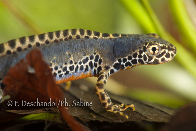 : Triton alpestre (Ichthyosaura alpestris alpestris), mâle, Forêt de Brotonne (76), France.