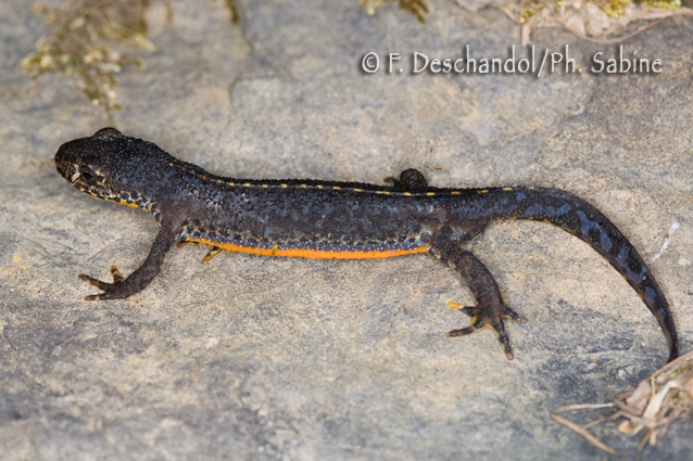 : Triton alpestre (Ichthyosaura alpestris alpestris), mâle, Les Plans sur Bex, Suisse.