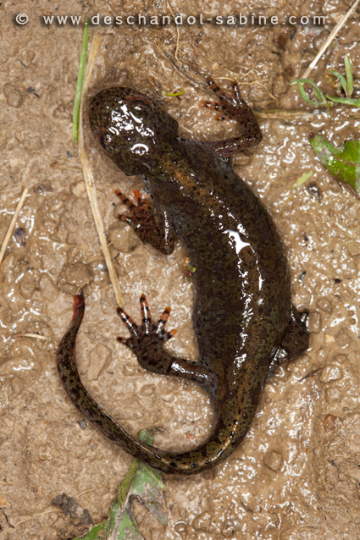 : Triton alpestre (Ichthyosaura alpestris alpestris), femelle, Asiago, Italie.