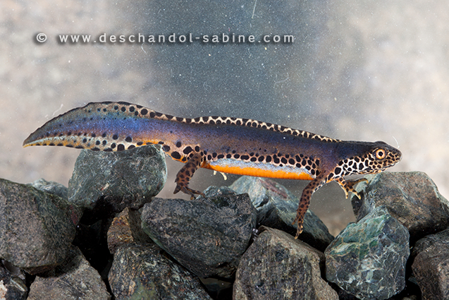 : Triton alpestre (Ichthyosaura alpestris apuanus), mâle, Rallio, Italie.