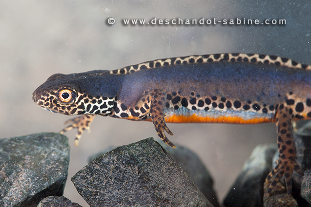 : Triton alpestre (Ichthyosaura alpestris apuanus), mâle, Rallio, Italie.