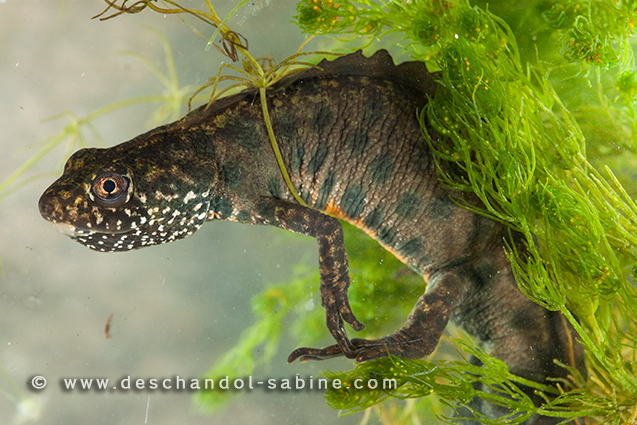 : Triton crêté italien (Triturus carnifex), mâle, Rallio, Italie.