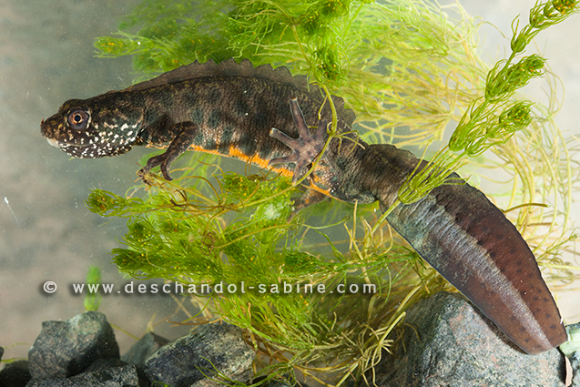 : Triton crêté italien (Triturus carnifex), mâle, Rallio, Italie.