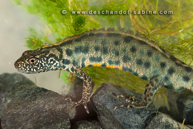 : Triton crêté italien (Triturus carnifex), mâle, Rallio, Italie.
