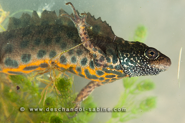 : Triton crêté italien (Triturus carnifex), mâle, Rallio, Italie.