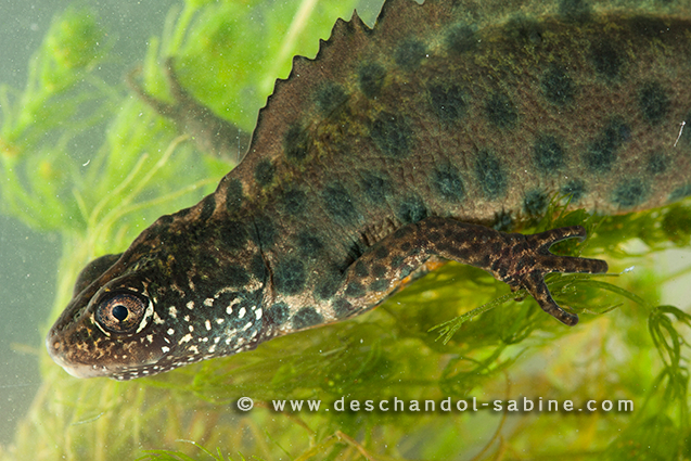 : Triton crêté italien (Triturus carnifex), mâle, Rallio, Italie.