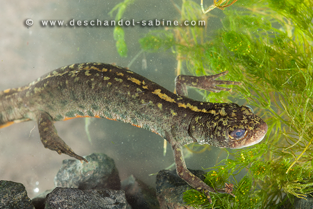 : Triton crêté italien (Triturus carnifex), femelle, Rallio, Italie.
